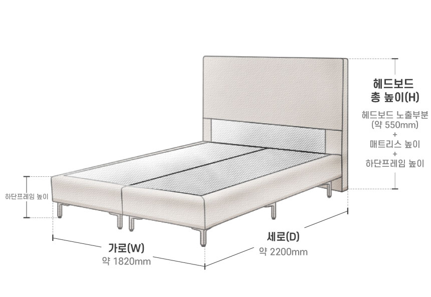 [하단프레임+매트리스+헤드보드 노출부분]