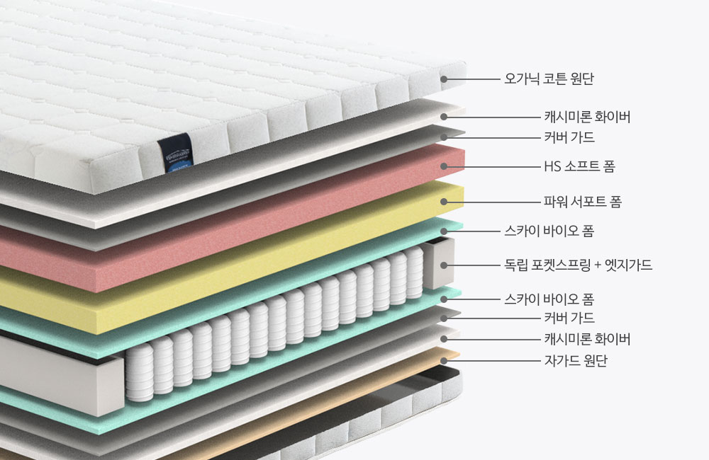 | 소재 | 스프링 | 고탄성 6회전 독립 포켓스프링 | |