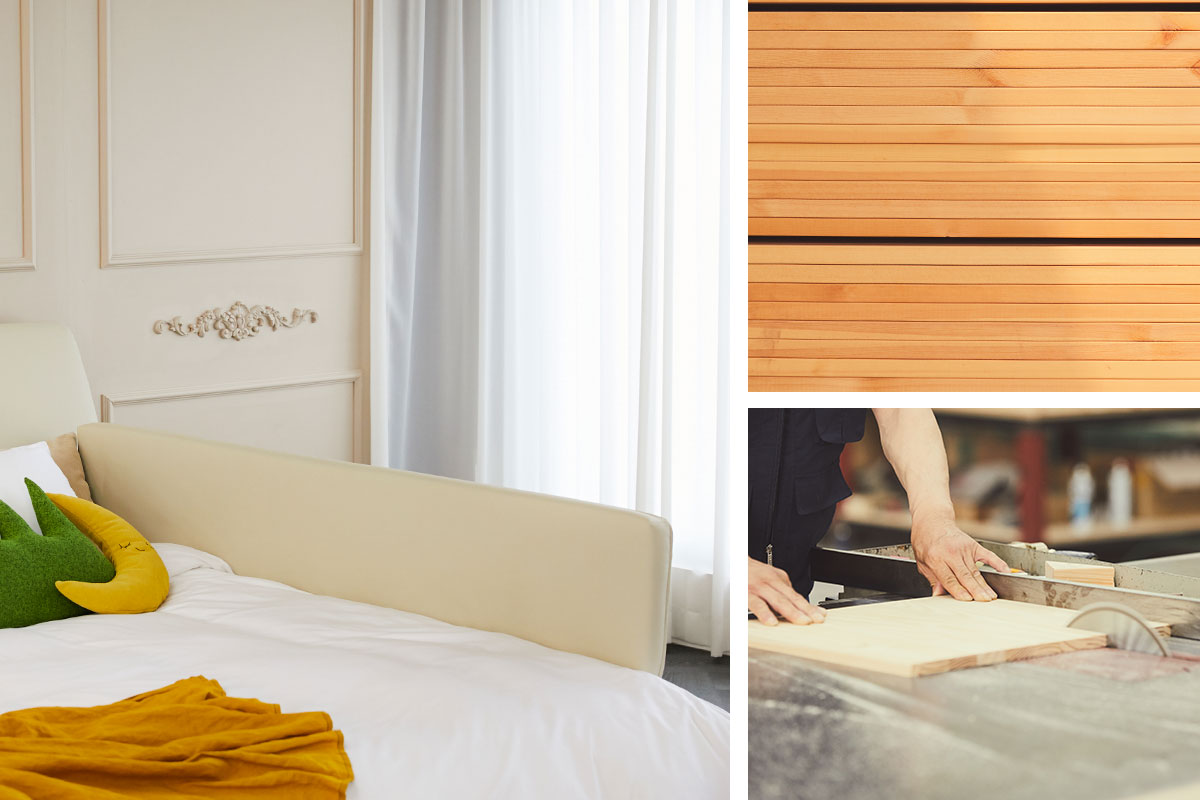 | 소재 | 목재 | 러시아 시베리아 소나무 원목 + 최고등급 "SE0" 친환경 원목합판 | |