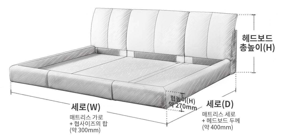 | Size/mm (매트리스 기준) | W(가로) | D(세로) | 프레임 외곽사이즈 (WxD) |